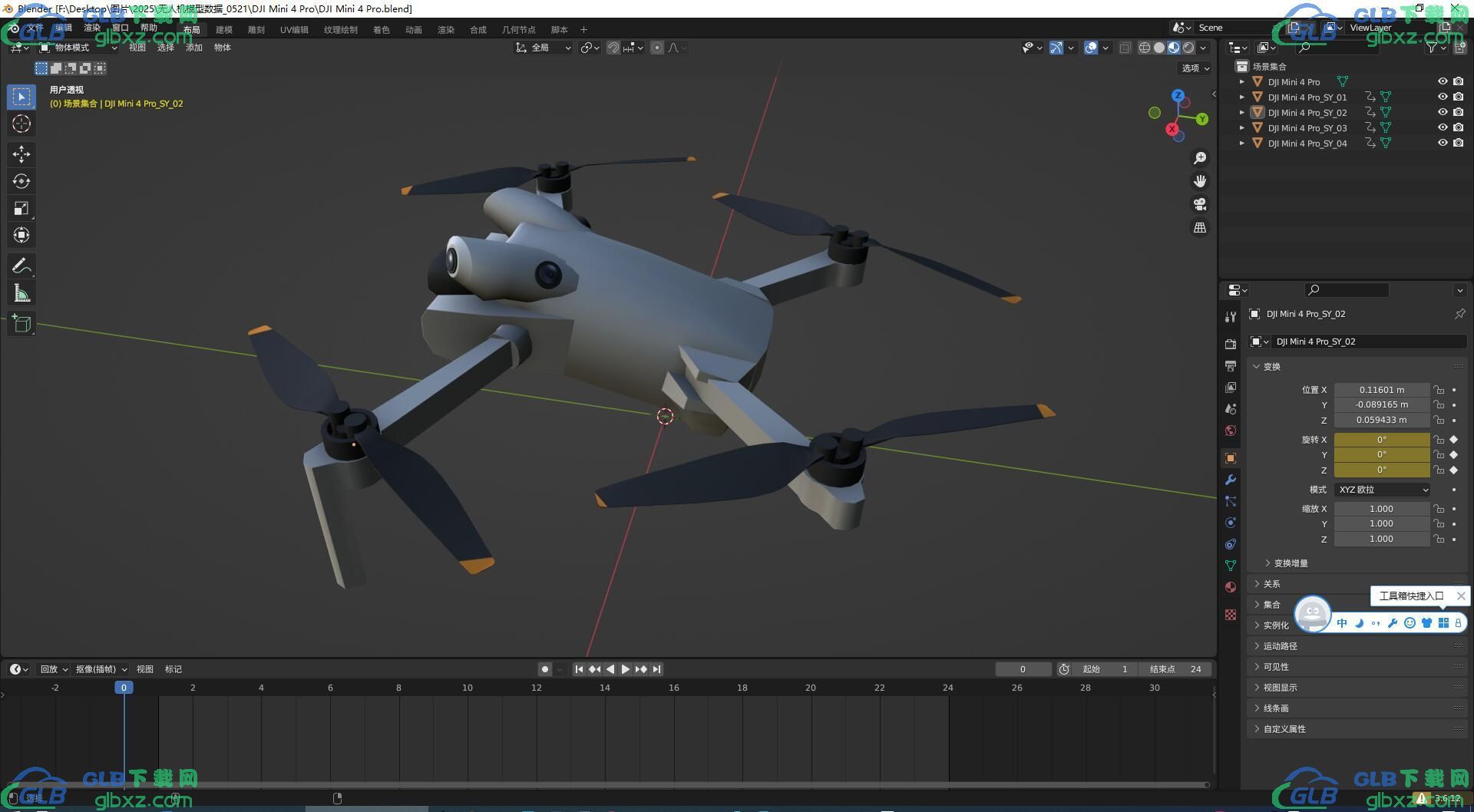 GLB下载网 - GLB/GLTF模型与格式资源免费下载,支持在线浏览与转换 » dji mini 4 pro无人机动画GLB/GLTF格式