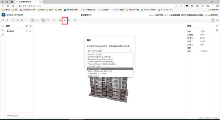 支持格式: fbx, 3ds, stl, ply, gltf, glb, 3dm, obj, wrl, off, stp, igs, dae, bim, brep, amf…..