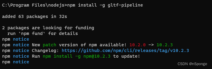 【gltf-pipeline】安装gltf-pipeline 进行文件格式转换