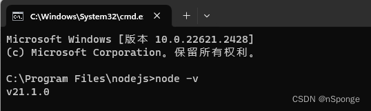 查看node.js的版本信息: