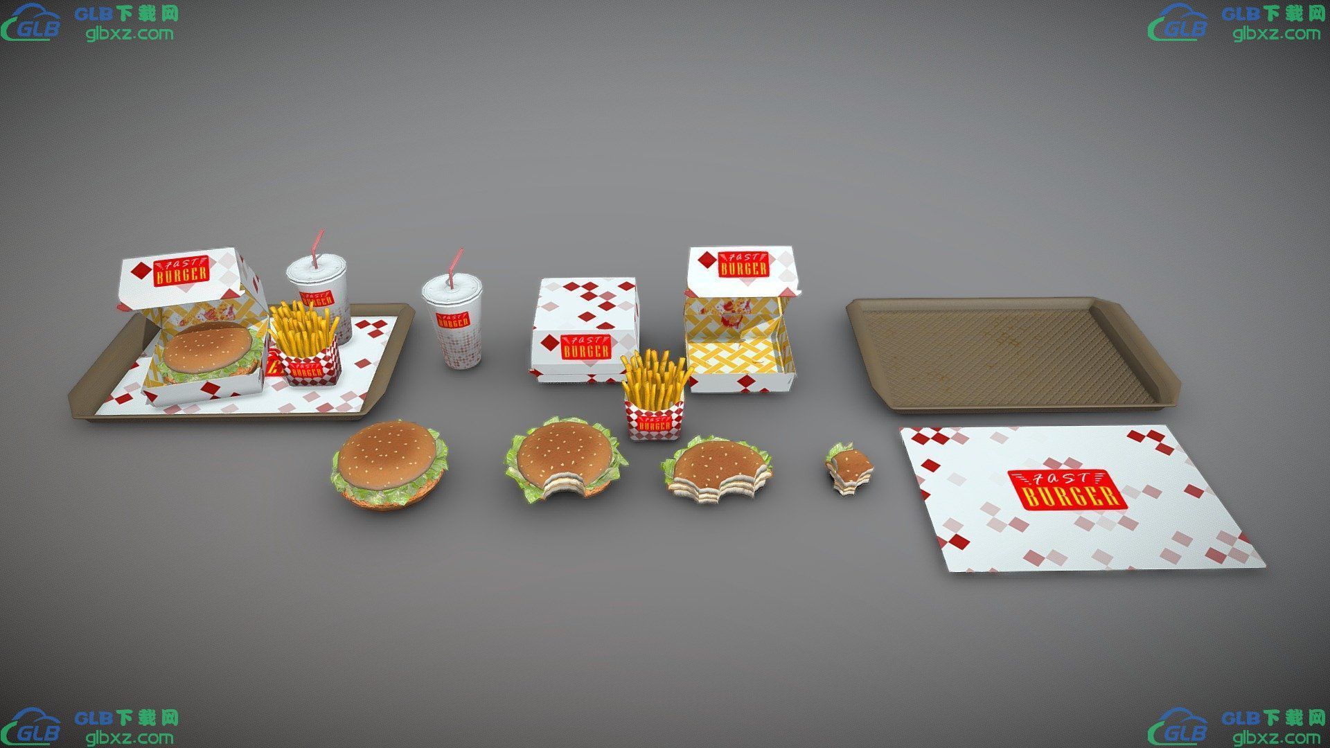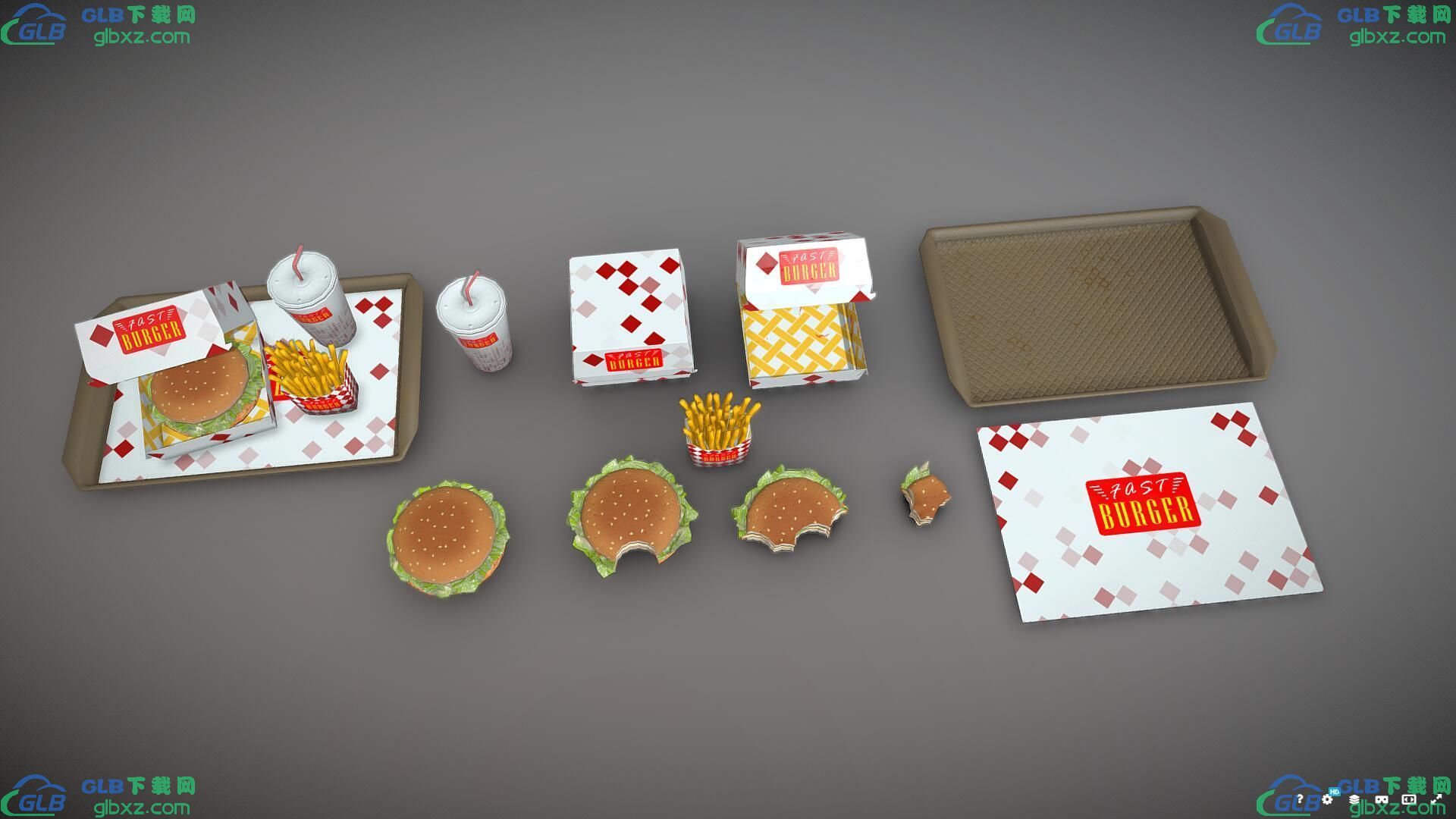 GLB下载网 - GLB/GLTF模型与格式资源免费下载,支持在线浏览与转换 » 风格化汉堡包可乐GLB/GLTF格式