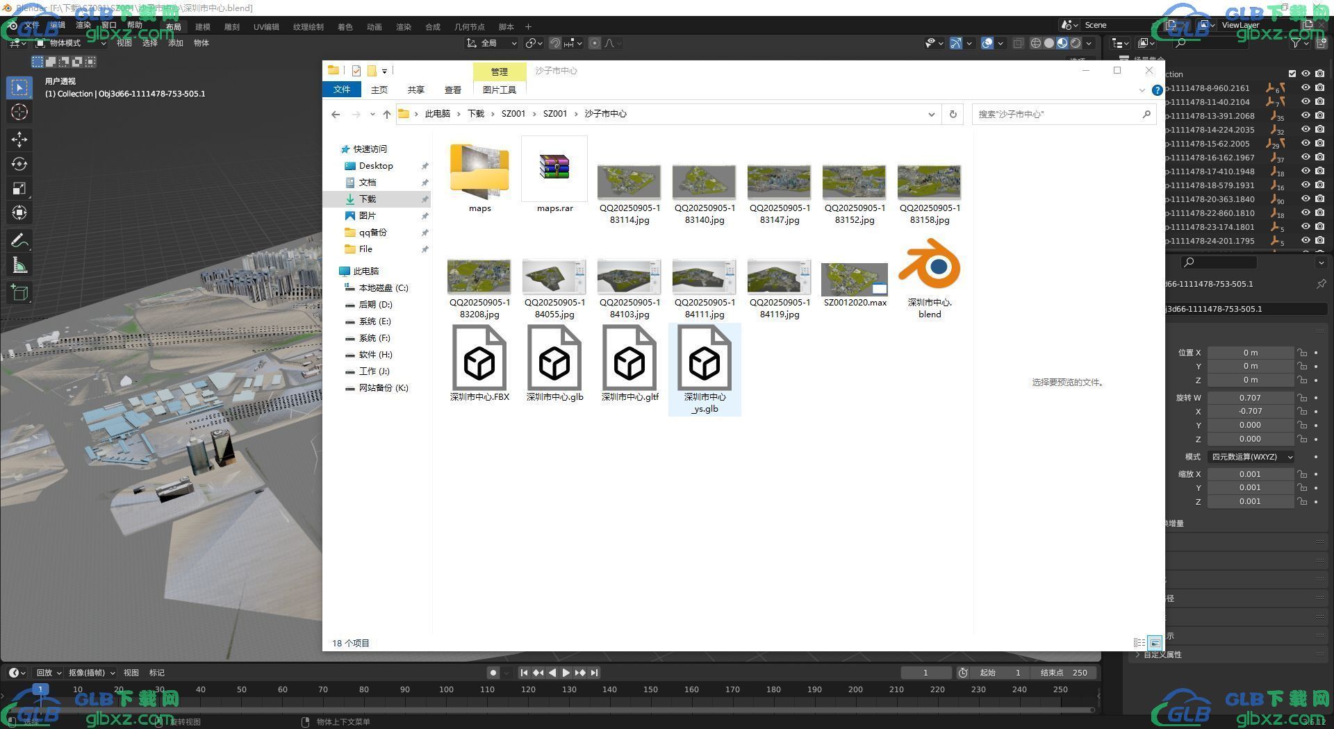 文件格式glb / gltf/ fbx / blend/3dmax/cesium/3dtiles,包括一个压缩glb文件大小78MB