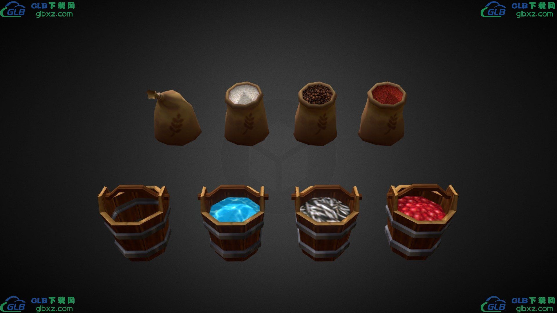 GLB下载网 - GLB/GLTF模型与格式资源免费下载,支持在线浏览与转换 » 麻袋和桶GLB/GLTF格式