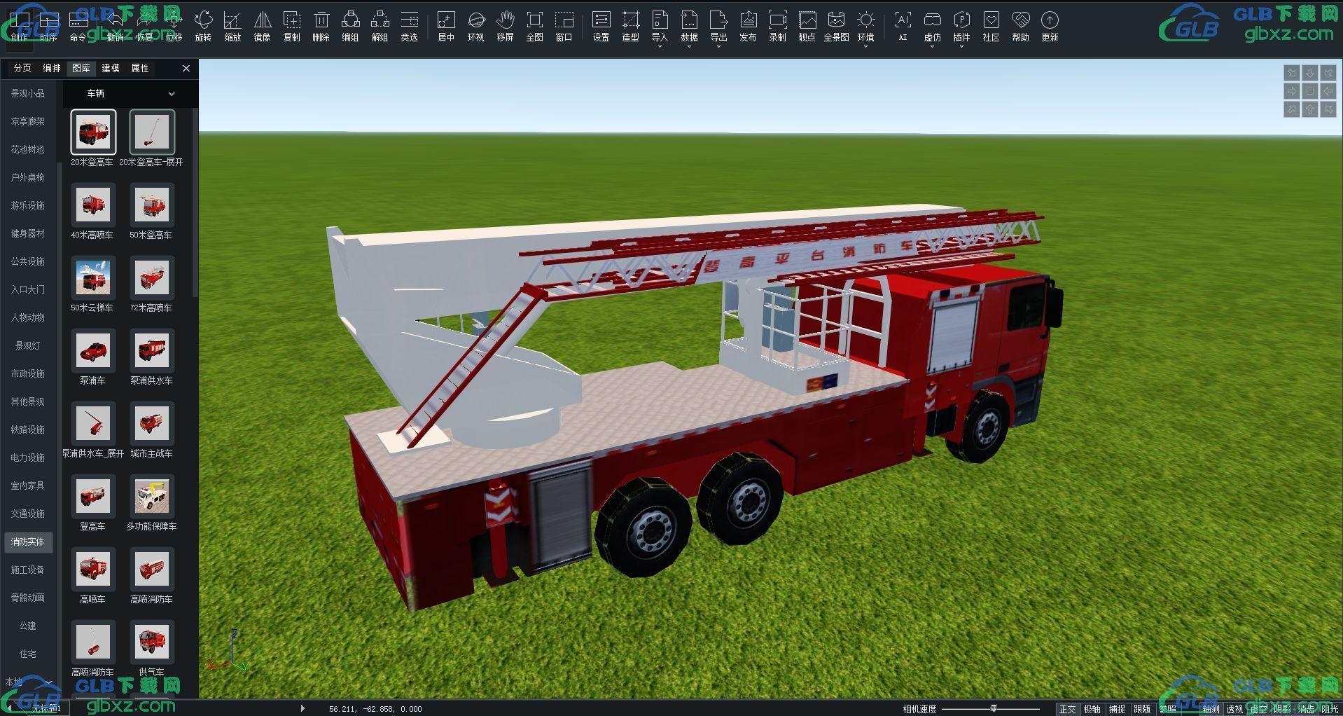 GLB下载网 - GLB/GLTF模型与格式资源免费下载,支持在线浏览与转换 » 20米登高车消防实体GLB/GLTF格式