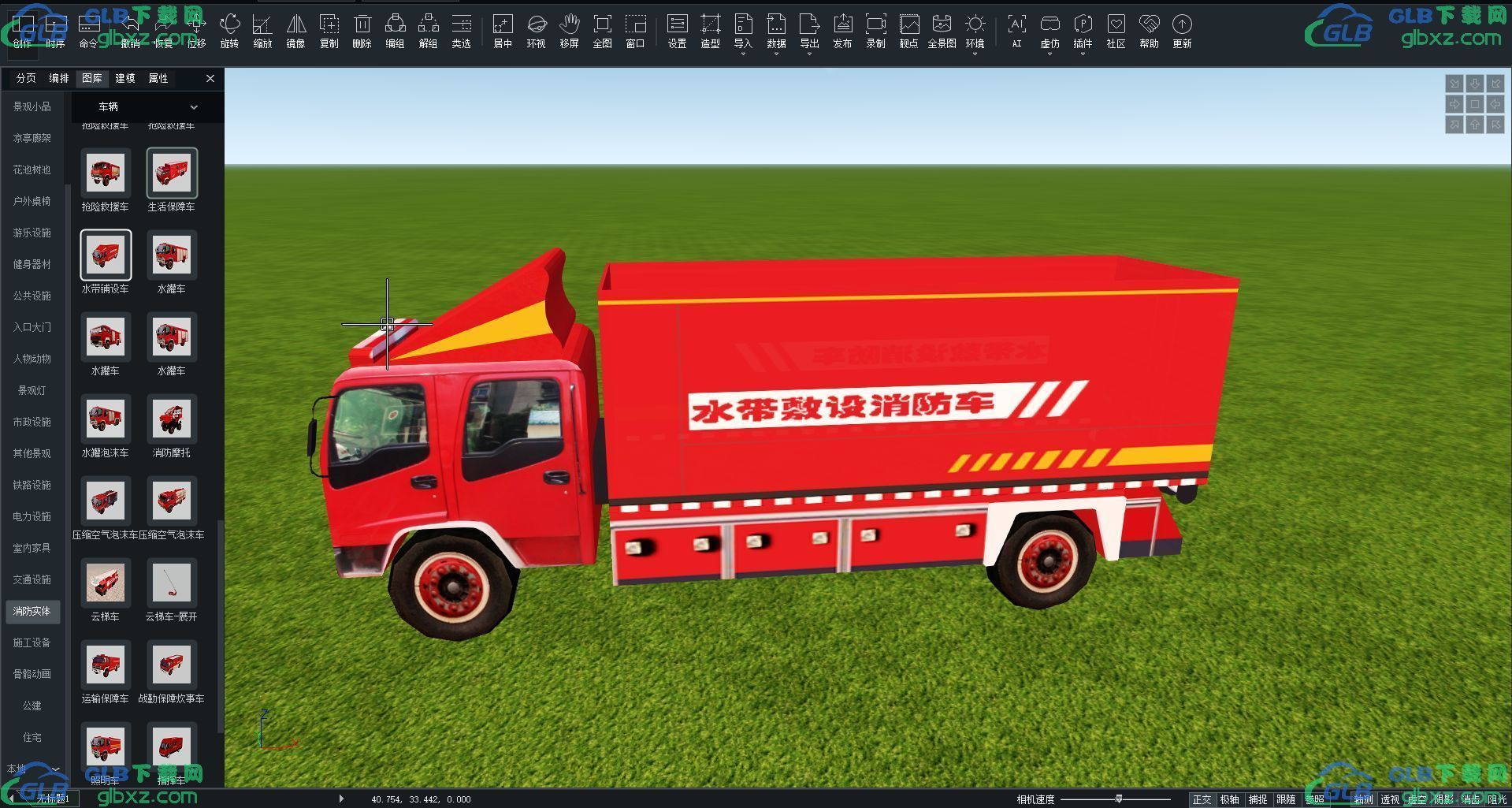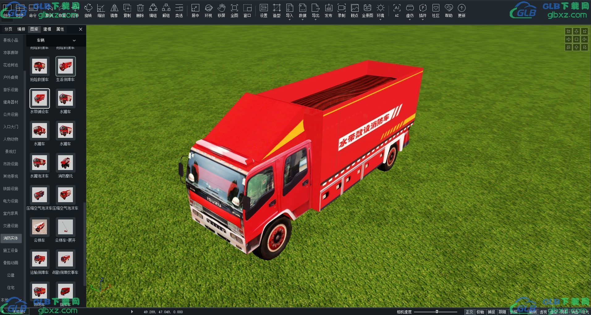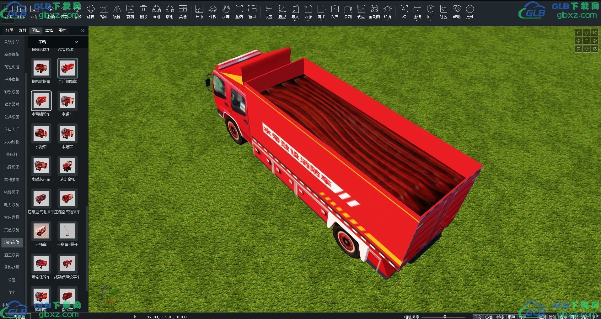 GLB下载网 - GLB/GLTF模型与格式资源免费下载,支持在线浏览与转换 » 水带铺设车消防实体车辆GLB/GLTF格式