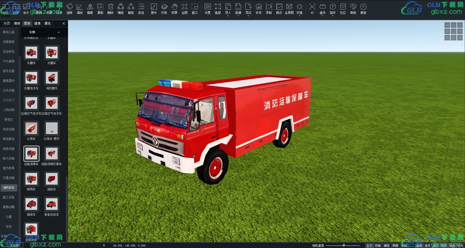 GLB下载网 - GLB/GLTF模型与格式资源免费下载,支持在线浏览与转换 » 运输保障车 消防实体车辆GLB/GLTF格式