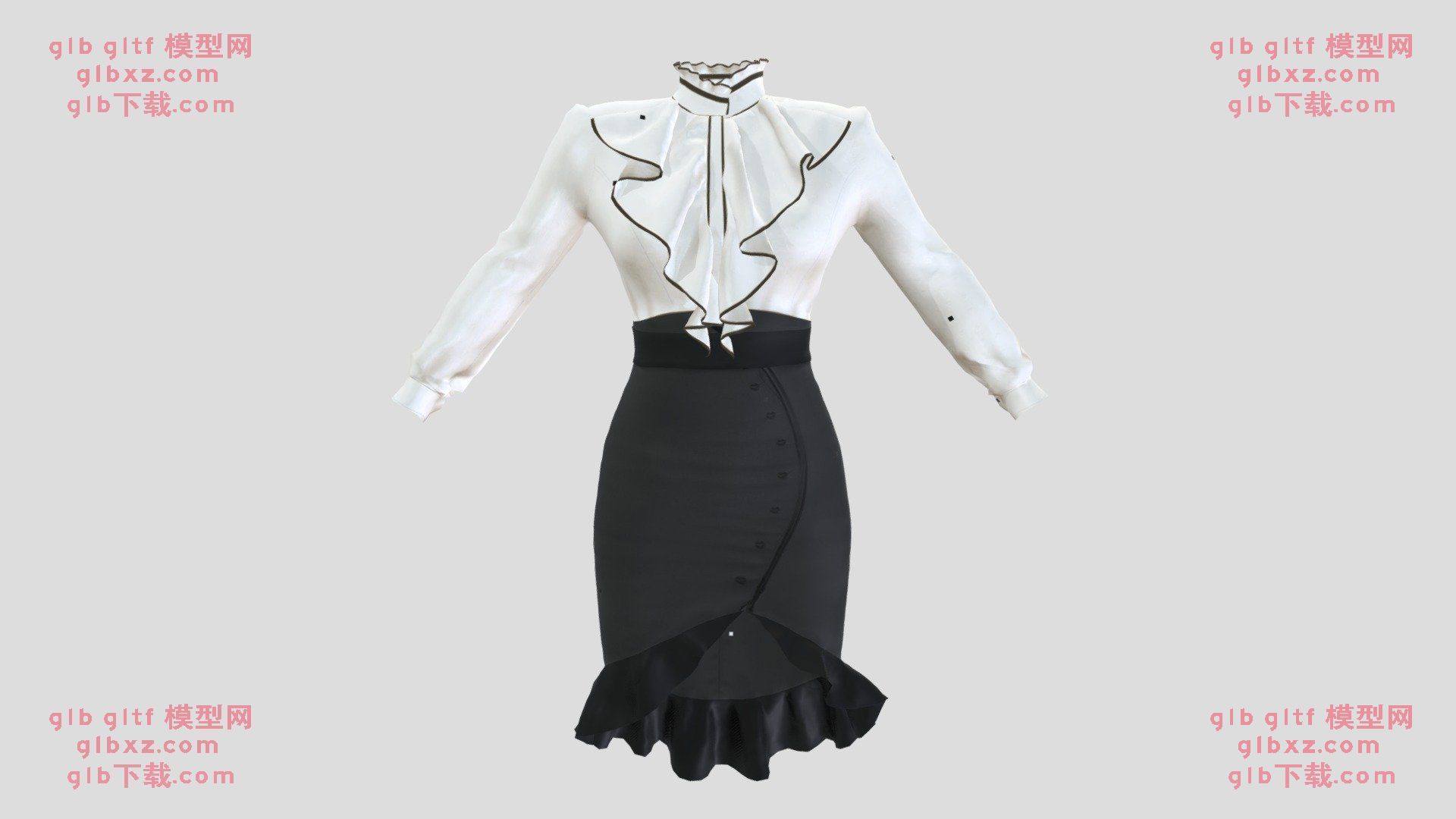 GLB下载网 - GLB/GLTF模型与格式资源免费下载,支持在线浏览与转换 » 衣服复古铅笔裙填充衬衫女性服装GLB/GLTF文件